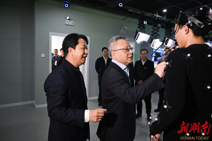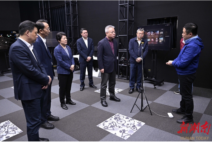 走進(jìn)馬欄山視頻文創(chuàng)產(chǎn)業(yè)園,沈曉明考察了樂田智作9號棚、馬欄山視頻超算中心、聚恒科技園、5G高新視頻多場景應(yīng)用國家廣電總局重點(diǎn)實(shí)驗(yàn)室、萬興科技大模型研發(fā)中心,詳細(xì)了解節(jié)目生產(chǎn)全流程、軟硬件研發(fā)、超算和大模型賦能音視頻產(chǎn)業(yè)發(fā)展、動漫產(chǎn)業(yè)集聚和創(chuàng)新平臺研發(fā)應(yīng)用等情況,并在明和光電察看了智能化裝備,了解舞臺機(jī)械、藝術(shù)燈光等文旅裝備創(chuàng)新研發(fā)情況。他指出,要充分發(fā)揮頭部企業(yè)帶動作用,招引更多文化和科技融合的上下游企業(yè)和資源要素集聚湖南,進(jìn)一步提高關(guān)鍵領(lǐng)域自主創(chuàng)新能力,實(shí)現(xiàn)國產(chǎn)化替代,并提供一站式服務(wù)解決方案,打造永不落幕的音視頻裝備展。