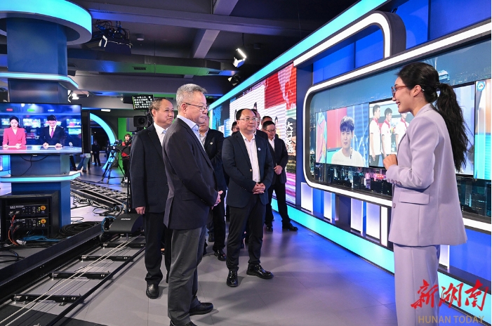 沈曉明來到長沙學(xué)院、湖南大眾傳媒職業(yè)技術(shù)學(xué)院、湖南藝術(shù)職業(yè)學(xué)院,實(shí)地察看了全媒體中心實(shí)驗(yàn)室、XR演播區(qū)、湖南廣播電視臺節(jié)目生產(chǎn)基地、全媒體實(shí)訓(xùn)室等,詳細(xì)了解學(xué)院發(fā)展、專業(yè)布局、校企合作、以新技術(shù)助推人才培養(yǎng)與文化產(chǎn)業(yè)深度融合等情況,指出要深化產(chǎn)教融合,推動校企合作向資源集約型發(fā)展,鼓勵(lì)更多行業(yè)專業(yè)技術(shù)人才進(jìn)校授課,打造特色鮮明的應(yīng)用型高校。